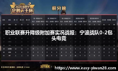 职业联赛升降级附加赛实况战报:宁波战队0-2包头电竞